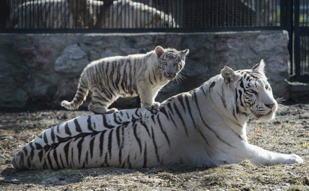 La foto del día.Un cachorro de tigre de Bengala blanco juega con su madre en un zoológico en la ciudad siberiana de Novosibirsk, ubicada unos 2.800 kilómetros al este de Moscú, Rusia.