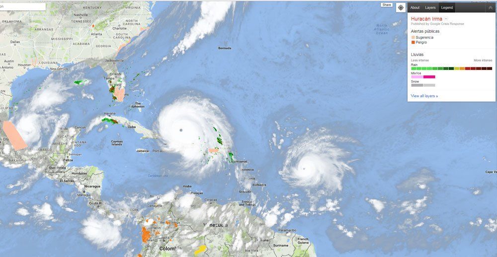 El gigante tecnológico Google activó hoy "Alertas SOS", un Mapa de Crisis y donaciones en línea para seguir el avance del huracán Irma, de categoría 5 -la máxima-, que ha dejado incontables daños en las islas del Caribe y amenaza con golpear a República Dominicana, Haití, Cuba y Florida (EE.UU.).