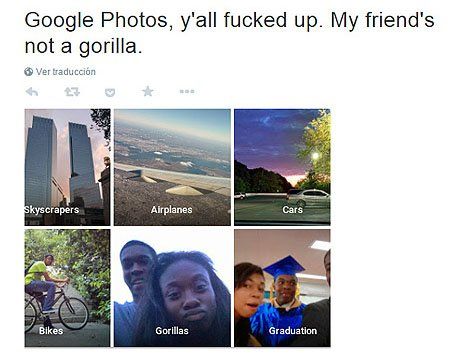 "¡Google Photos, estáis locos!", les interpeló Jacky Alcine en una serie de mensajes, subrayando hasta qué punto el error era insultante. "Mi amiga no es un gorila", se indignó.Un alto responsable de Google, Yonatan Zuner, atribuyó el error a la inteligencia artificial encargada de "aprender" a reconocer los lugares, las personas y los objetos en las fotografías."Ups. Este accidente se sitúa bastante alto en la lista de errores informáticos que no queremos llegar a ver nunca. Siento escalofríos", lamentó Zunger.El dirigente de Google aseguró que el programa había tenido otros problemas, como no reconocer el rostro de algunas personas, al identificarlas como perros.Google y Facebook forman parte de las empresas de Silicon Valley que invierten masivamente para mejorar el reconocimiento facial.Mejorar la diversidad en los rangos de ingenieros de Silicon Valley ayudaría probablemente a evitar este tipo de problemas, dijo Alcine a los medios.Fuente: Noticias Argentinas