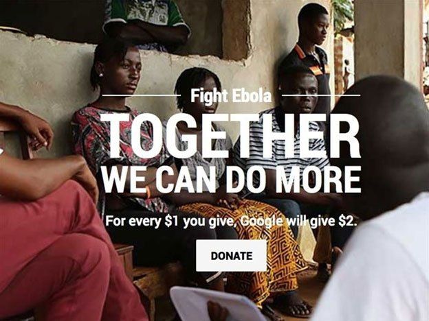 Google lanzará una campaña para ayudar en el combate contra el ébola con una contribución de dos dólares por cada uno que el público done a un conjunto de organizaciones sin ánimo de lucro, como Save the Children y Médicos Sin Fronteras.