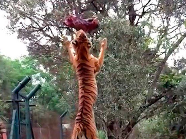 Un grupo de visitadores captó el momento en el que un tigre de un zoológico de Sudáfrica saltó dos metros para alcanzar la carne. El video, publicado el 31 de diciembre, ya tiene más de 2 millones de reproducciones.