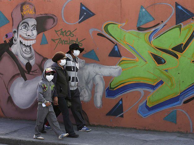 La foto del día.Protegidos. Este grupo lleva máscaras para minimizar los efectos de las cenizas arrojadas por el volcán Cotopaxi, en Machachi, Ecuador.