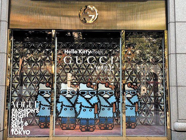 Para ello, Frida Giannini, la directora creativa de la firma de lujo, ha dibujado a Kitty con sus últimos modelos para un llavero de regalo, una aplicación de móvil y para decorar los escaparates de la tienda de Gucci en el elegante barrio de Aoyama de la capital nipona.