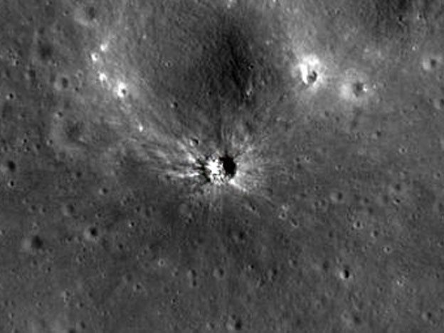 El cráter, de 34 metros de diámetro, fue localizado el pasado mes de abril después de comparar imágenes de la zona del Mare Nubium (Mar de las Nubes) de antes y después del evento. Se encuentra solo a 3 km de la predicción realizada con los telescopios en un primer momento. En la imagen, pueden verse los efectos del material expulsado, que se extiende a 500 metros en todas las direcciones.