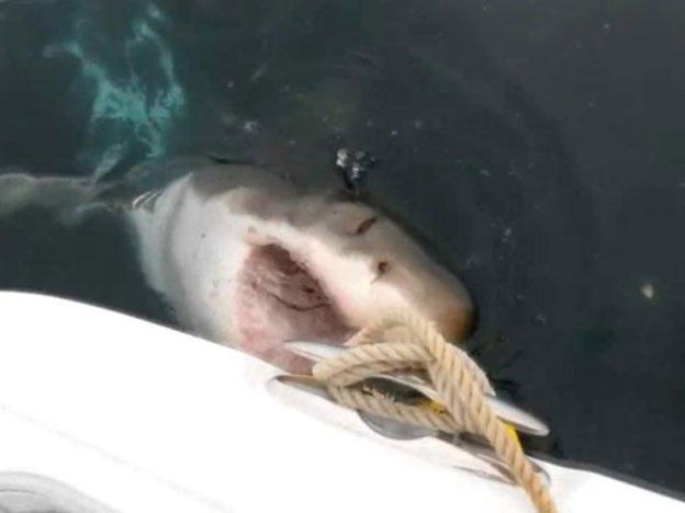 El tiburón nadó cerca de la embarcación durante unos 20 minutos dando tiempo a los científicos a filmar la escena, que recuerda a la película Tiburón de Steven Spielberg ya que se aprecia cómo la cabeza del animal rompe la superficie del agua exhibiendo sus dientes antes de morder la bolsa que colgaba a un lado de la embarcación y desaparece en las profundidades.