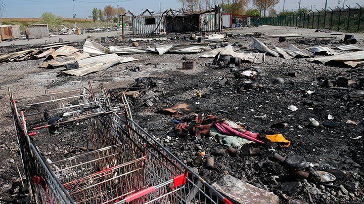 La mayor parte del campamento —cerca del Canal de la Mancha— quedó reducido a restos calcinados de cobertizos de madera y de las escasas pertenencias de los migrantes, que convergieron al norte de Francia con la esperanza de llegar a Gran Bretaña.