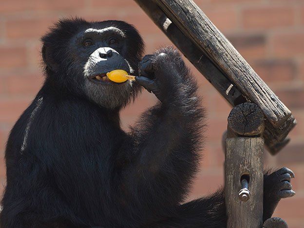 Los osos pardos se ganaron bloques gigantes de sandías, papayas y uvas congeladas. Los monos mordisquearon delicadamente sus bocaditos congelados - mientras observaban a los niños visitantes que se refrescaban con sus conos de helado.
