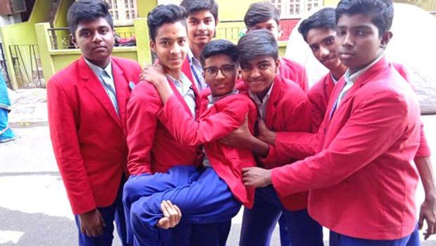 Lakshmish Naik nunca ha podido caminar pero ha llevado una vida normal gracias, en gran parte, a sus amigos, quienes llevan casi "una década llevando a Lakshmish por la escuela", cuenta el diario.