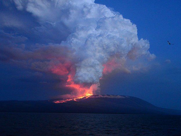Precisó que "la única población de iguanas rosadas del mundo, compartiendo el hábitat con iguanas amarillas y las tortugas gigantes Chelonoidis becky", se encuentran en el flanco noroeste del volcán, "por lo que se espera que no se vean afectadas".Aseveró que cuando actividad eruptiva disminuya y sea seguro el ingreso de los guarda parques se verificará la situación en el terreno.Añadió que la erupción no representa un riesgo para las operaciones turísticas, por lo que "no se han cerrado los sitios de visita cercanos al volcán, pero la autoridad ambiental está notificando a los operadores para que tomen las precauciones respectivas ante este acontecimiento natural".La población humana más cercana, Puerto Villamil, se encuentra 115 kilómetros al sur de la isla Isabela.Este volcán tiene una altura de 1.707 metros sobre el nivel del mar, su caldera tiene 5,5 a 6,5 kilómetros de diámetro y una profundidad de 700 metros.La última erupción se registró en 1982, según los informes oficiales.Fuente: AP