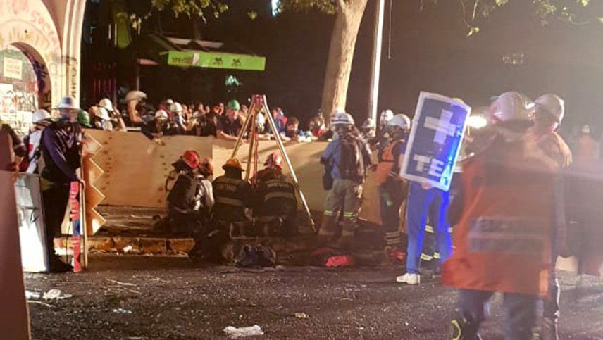 Al lugar del siniestro llegaron varios camiones de bomberos para apagar las llamas mientras miles de manifestantes continuaban pacíficamente en la “Plaza de la Dignidad”, cantando, bailando y hasta lanzando fuegos artificiales.