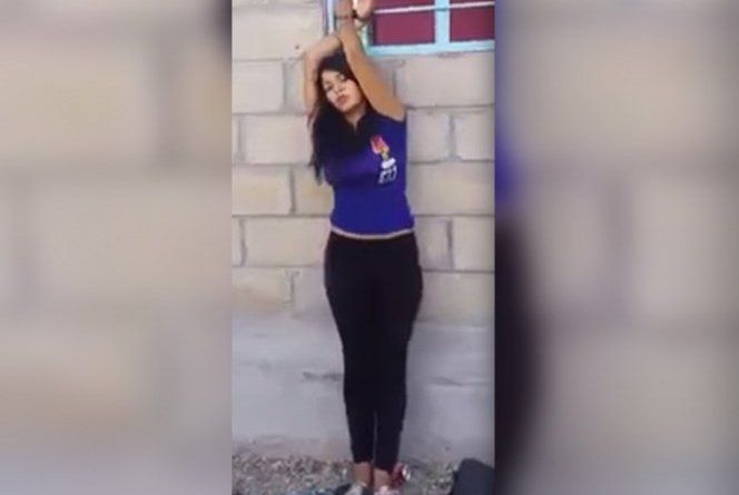 En las imágenes, se observa a la mujer, de pie y amarrada de las muñecas a la ventana de un lugar que parecer ser una casa, por fuera, donde mientras un sujeto la golpea en las piernas, los glúteos y la espalda, otro hombre graba la tortura.
