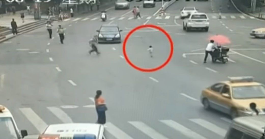 Un policía de tránsito se vistió de héroe en la ciudad de Tongren, en China, cuando salvó la vida de un niño al evitar que fuera atropellado.