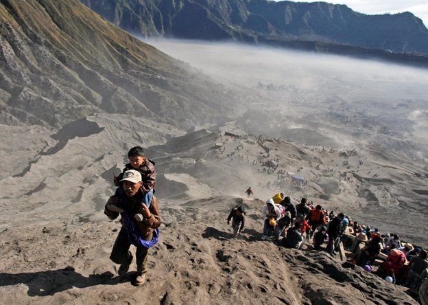 La foto del día.Por la abundancia. Un grupo de fieles sube el Monte Bromo para lanzar ofrendas en su cráter en Probolinggo, Java Oriental, Indonesia.