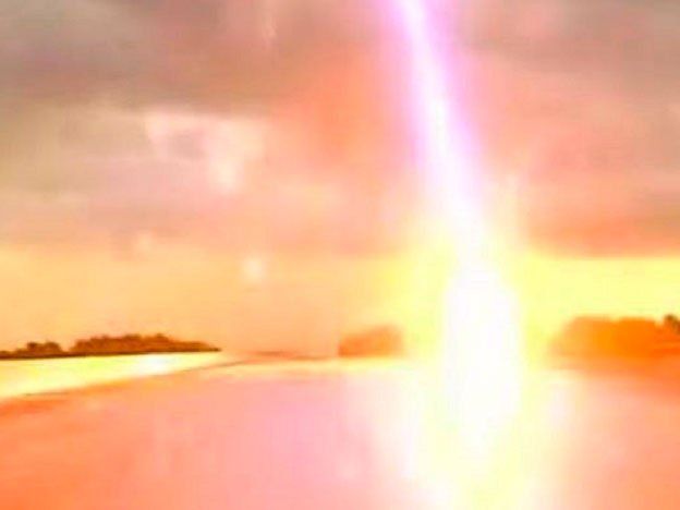 De pronto, el cielo se ilumina y un rayo cae a solo unos metros frente a la patrulla.Según la televisora local WLOX, Rodríguez regresó al lugar donde impactó el rayo y encontró que parte del concreto había quedado dañado, lo que ofrece una idea de lo letal que pudo haber sido un impacto directo.