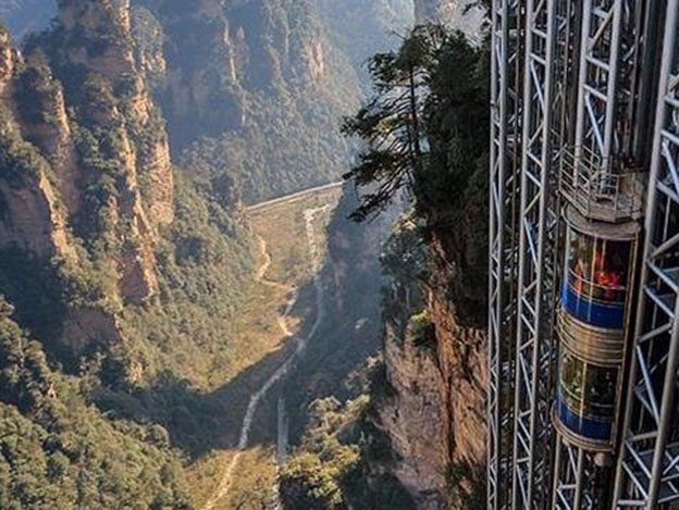 Fue el blog Spot Cool Stuff el que compartió tremendas imágenes. Situado en Hunan (China), está reconocido como el elevador exterior más alto del mundo en el Libro Guinness de los Récords. Se eleva nada menos que 326 metros en mitad de los preciosos acantilados del Parque Nacional de Zhangjiajie. Un lugar único, elegido por el cineasta James Cameron para filmar varias escenas de su exitoso filme Avatar; y que puede apreciarse en todo su esplendor desde esta colosal construcción.