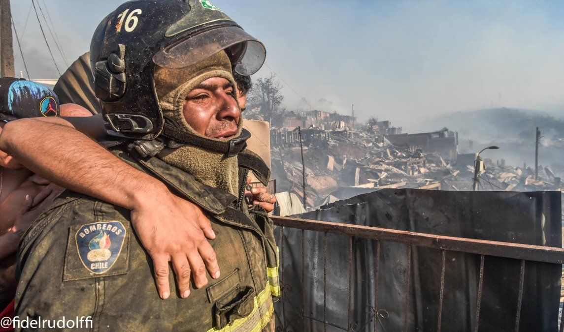 Una de ellas es la del bombero Juan Carlos Espinoza, de la 16ª Compañía de Bomberos de Valparaíso, quien pese a perder por completo su casa en medio del incendio, fue en ayuda de sus vecinos que también resultaron afectados por las llamas.