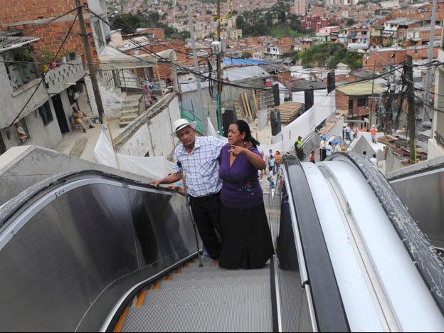 MEDELLÍN, Colombia,(AFP-NA) - Los habitantes del humilde barrio Las Independencias, en la Comuna 13 de Medellín (noroeste de Colombia), cuentan desde esta semana con un novedoso sistema para movilizarse: escaleras eléctricas que suben las escarpadas laderas donde levantaron sus casas, a los bordes de la ciudad.