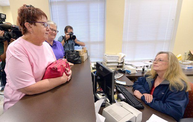Poco después de que la oficina de licencias del condado de Rowan abrió, la secretaria Kim Davis les negó licencias a dos parejas en razón de sus creencias religiosas y la "autoridad de Dios".