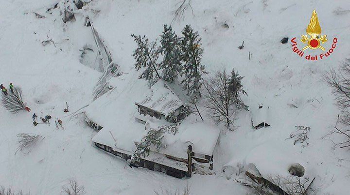 El alud cubrió el edificio de tres pisos en la región central de Abruzzo el miércoles por la noche, según medios italianos. El hotel se encuentra a unos 45 kilómetros de la ciudad costera de Pescara. Varios sismo sacudieron la región el miércoles, incluyendo uno de magnitud 5,7, pero en un primer momento no estaba claro si los temblores habían provocado la avalancha