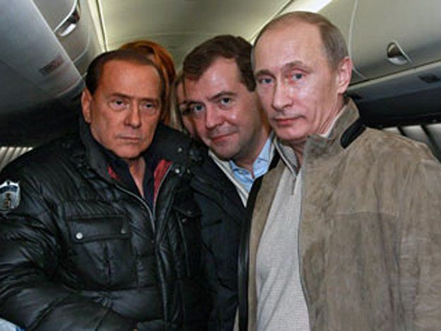 Aunque cambien las circunstancias políticas de los protagonistas, parece que la buena sintonía no se rompe. El ex primer ministro, y líder del partido mayoritario en Italia, Silvio Berlusconi ha sido agasajado por el ex presidente, primer ministro saliente y presidente electo de Rusia, Vladímir Putín y el ex primer ministro, presidente saliente y probable nuevo primer ministro Dmitri Medvédev, en la estación de esquí de Krasnaïa Polianae, al sur de Rusia.