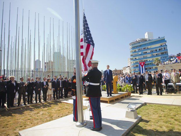 La Habana. La bandera de las barras y estrellas ya ondea en la Embajada de EE.UU. en La Habana, inaugurada ayer formalmente por John Kerry, primer secretario de Estado que visita la isla en 70 años, en una jornada histórica que abre un nuevo capítulo en la relación entre los dos países, antiguos enemigos.El jefe de la diplomacia estadounidense presidió la ceremonia solemne del izado de la bandera en la legación, situada en pleno Malecón de La Habana, entorno en el que se congregaron unas 700 personas que celebraron con aplausos y vítores el momento en que se alzó la enseña y se escuchó el himno norteamericano.
