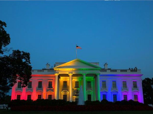 Alrededor de un centenar de personas se reunieron en la Avenida Pensilvania de Washington para contemplar y fotografiar la iluminación que refiere a la bandera por los derechos del colectivo LGBT, precisó la agencia EFE.