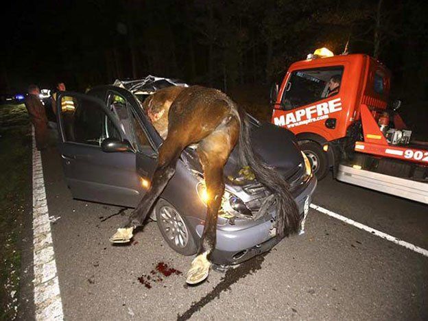 Un automóvil se impactó contra un caballo en una ruta que une a Salvaterra de Miño con Guillarei, en Vigo (España), dejando como resultado la muerte del equino y heridas leves en la conductora del vehículo, informaron las autoridades.