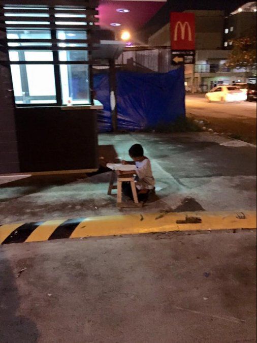 No existen limitaciones o pretextos cuando uno en verdad tiene ganas de superarse. Así lo demuestra una conmovedora fotografía compartida en Facebook en la que se aprecia a un menor estudiando en la calle, debido a la falta de luz eléctrica en su precaria vivienda en Filipinas.La imagen fue difundida en el perfil de Facebook de Joyce Torrefranca, una mujer que se topó con esta escena mientras caminaba por las calles de Cebú, una provincia de Filipinas. La foto muestra al niño haciendo sus tareas escolares en un improvisado pupitre e iluminado por las luces de la calle, una luz de la que carece en su vivienda.