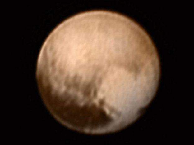 Después de un viaje de 9 años y miles de millones de kilómetros para llegar a Plutón, la nave New Horizons de la NASA envió a la Tierra el miércoles la imagen más detallada jamás vista del planeta enano.Según la página de la NASA, esta vista permite apreciar tres regiones de Plutón: una figura alargada hacia el ecuador que se conoce informalmente como "la ballena", la zona brillante en forma de corazón que mide cerca de 2.000 kilómetros, y la región polar en la parte de arriba.