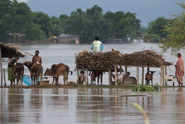 85 kilómetros al Este de Gauhati, India. Las autoridades estatales los efectos del monzón obligaron a unas 200.000 personas a abandonar sus hogares y refugiarse en tienda. La zona es propensa a las inundaciones durante la temporada de monzones, que va de junio a setiembre.