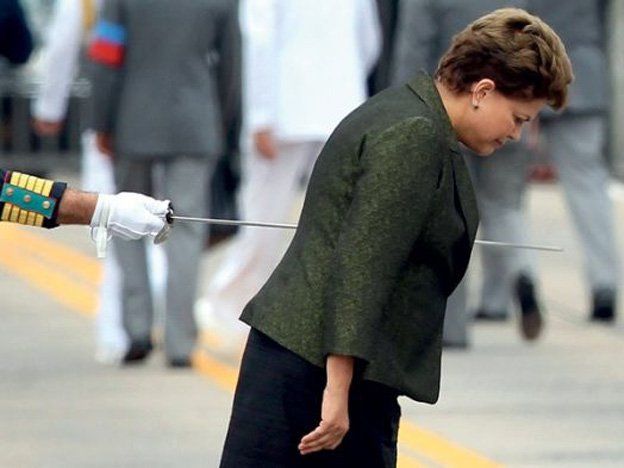 Gracias a una ilusión óptica se pudo ver a la primer mandatario encorbada y atravesada por un sable militar, cuando en realidad la guardia oficial le estaba rindiendo honores. La imagen fue publicada en el periódico "O Estado de Sao Paulo" el 21 de agosto de 2011 y 10 días después fue elegida por la revista "Veja" como "imagen de la semana".