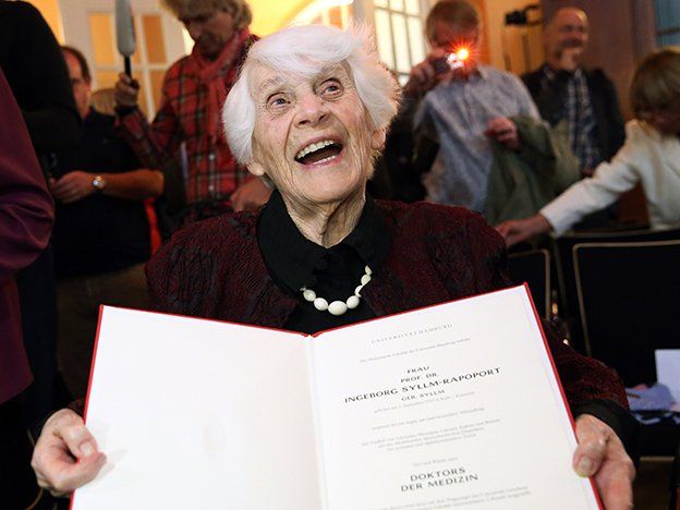 Los nazis no permitieron a Ingeborg Syllm-Rapoport defender su tesis en 1938 debido a su origen judío. Ahora, 77 años después, habiendo cumplido todos los requisitos, recibió su título de doctora a los 102 años de edad.La neonatóloga alemana aprobó el mes pasado un examen oral y recibió su diploma el martes en la Universidad de Hamburgo. La universidad dijo que con ello "no se repara la injusticia que sufrió... pero se contribuye a rehabilitar el capítulo más negro de la historia alemana".