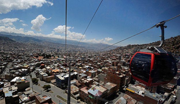 La ciudad de La Paz (Bolivia) tiene el teleférico urbano más alto del mundo, al levantarse a casi 4.000 metros sobre el nivel del mar, tras poner en marcha la segunda de sus líneas, que une a lo largo 3,88 kilómetros las ciudades de La Paz y El Alto.