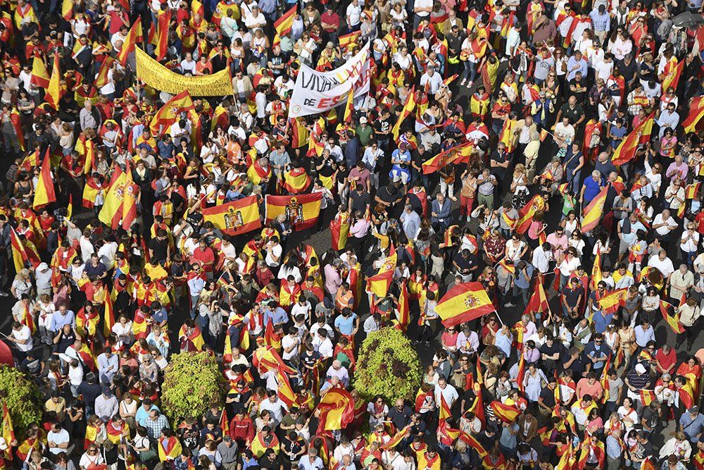 "Cataluña es España", gritaban mientras tanto miles de manifestantes concentrados con banderas españolas en el centro de Madrid.