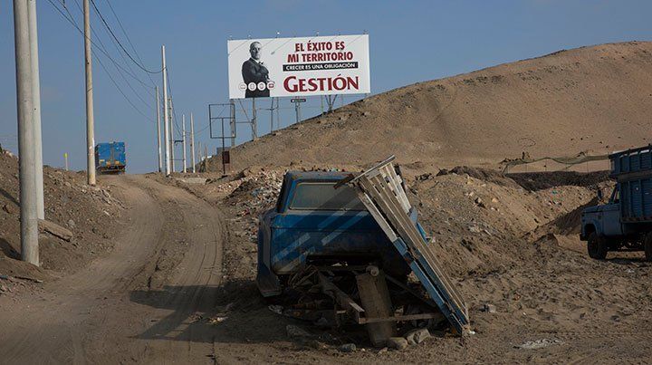 El camino a la zona de playa más rica de Perú es contrastante: mientras las vallas publicitarias en la ruta vial del Pacífico Sur muestran paisajes paradisiacos, los pueblos que las rodean están llenos de basura, carecen de agua potable y tienen habitantes que padecen la presencia de mafias locales, que invaden y trafican los terrenos.