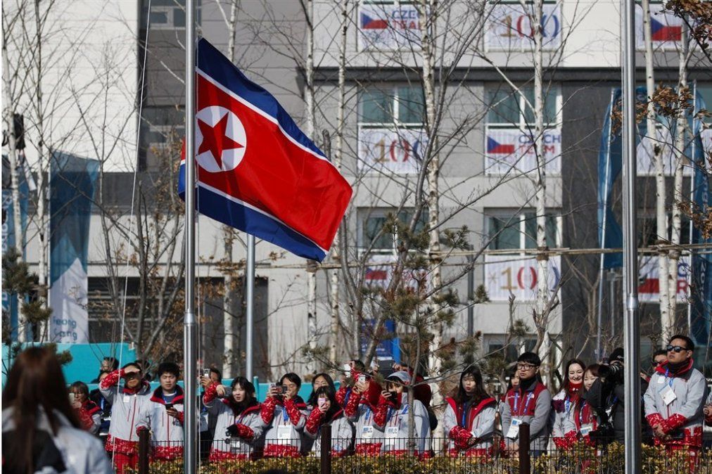 Un día antes de la ceremonia inaugural de los Juegos Olímpicos de invierno de Pyeongchang 2018, la delegación de Corea del Norte fue oficialmente recibida en la Villa Olímpica de Gangneung, donde ya flamea la bandera del país.