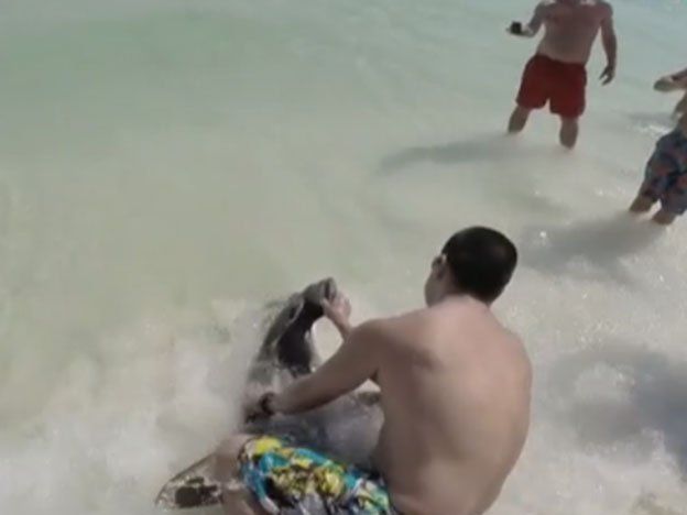 Dos hermanos en Florida, Estados Unidos, vieron a un tiburón martillo malherido que llegó a una playa y se acercaron para ayudarlo.