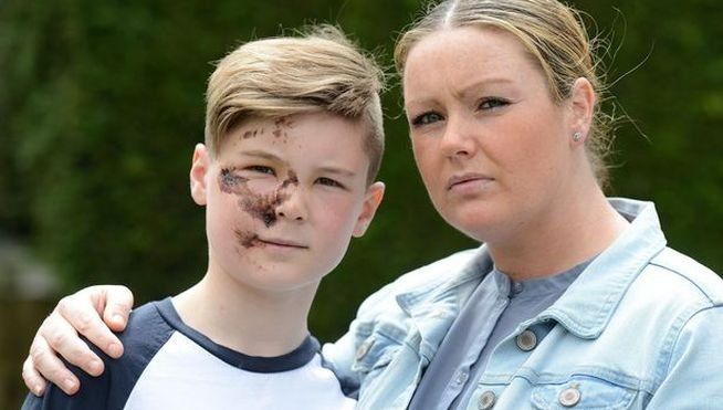Bailey Mills, de 12 años, quedó inconsciente tras impactar su cabeza contra el asfalto. El joven salió disparado de su bicicleta y tras el accidente tuvo que ser trasladado de inmediato a un hospital. El niño se fracturó el cráneo, perdió un trozo de nariz y se rajó el labio, tal y como publica Mirror.