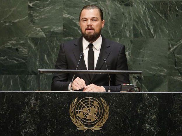 El actor intervino en el inicio de la Cumbre del Clima a invitación del secretario general de la ONU, Ban Ki-moon, quien lo nombró Mensajero de la Paz para difundir el mensaje contra el cambio climático.