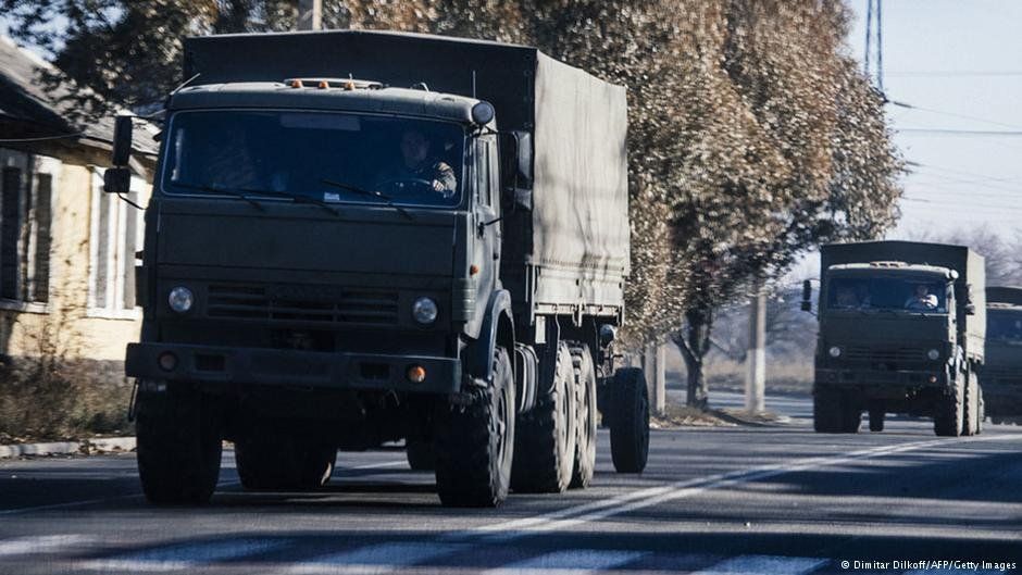dirigían a Donetsk, estaban cubiertos por lonas, salvo uno en el cual se podían ver cajas de municiones.