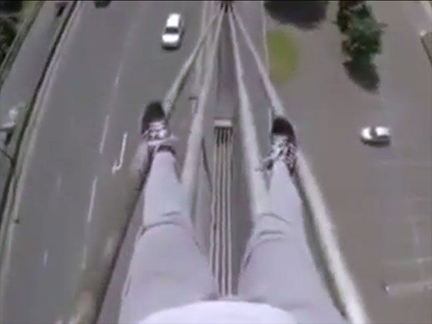 Adolescentes en Gales, Reino Unido, se filmaron escalando un puente de 52 metros de altura y deslizándose por los cables de suspensión.La peligrosa acrobacia, sin ningún tipo de dispositivo de protecciçon, se realizó en el puente de George Street, en la ciudad de Newport, y fue difundida por la red social Facebook.