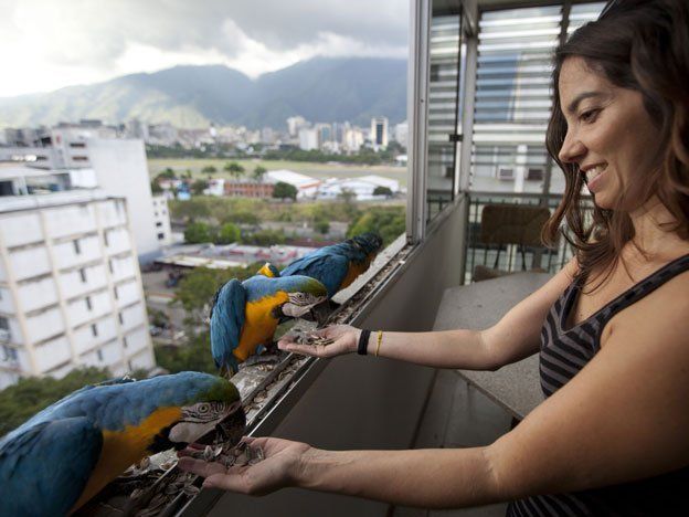 Contreras es una de más de 2.000 personas que se han organizado el grupo "Guacamayos en Caracas" para compartir experiencias y promover la protección de aves que llegan a sus balcones. Científicos y aficionados coinciden en que en la introducción de los guacamayos en Caracas jugó un papel importante Vittorio Poggi, un inmigrante italiano, quien en la década de 1970 sorprendía a sus vecinos de una barriada de clase media del este de Caracas, desplazándose en motocicleta acompañado de una guacamayo azulamarillo que volaba libre su lado.En 1973 "empezó todo", cuando "llegó un guacamayo perdido", dijo Poggi, de 70 años.