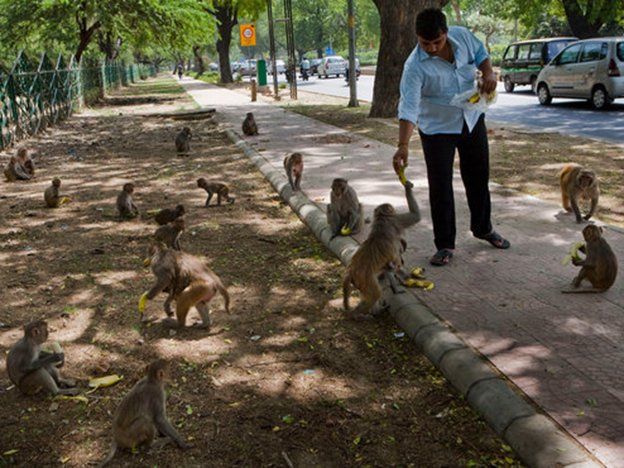 En el hinduismo los monos son sagrados y aparecen encarnados en su dios Hanuman, adorado en varios templos de la capital india, donde cada martes se acercan los creyentes a rezar a la divinidad primate. El funcionario explica que durante un tiempo atrapaban a los monos y los enviaban a santuarios, pero llegó un momento que las reservas de animales rechazaron admitir más primates debido a su alto número. Después la NDMC comenzó a mandar a los macacos a otros estados, pero estos también se negaron a recibir más. Así, la única forma de mantener a los macacos a raya eran los langures, pero la prohibición de su uso empeoró la crisis.