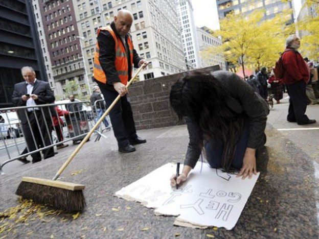 Miembros del movimiento Ocupa Wall Street arrojaron heces y orina dentro de una sucursal del banco JPMorgan Chase y en las escaleras de una plaza del sur de Manhattan.