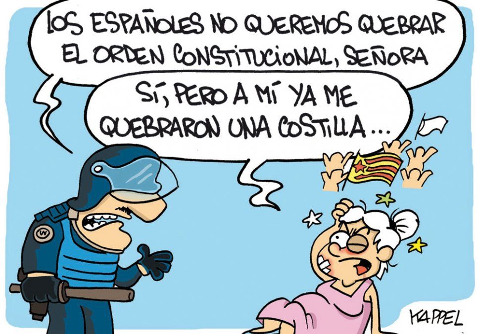 Inicio Mundo El humor de Kappel El humor de Kappel. 03 de octubre de 2017 - 09:14 Los valores de la "democracia" en España Por UNO Temas relacionados: El humor de Kappel Humor Cataluña España las más leídas Tercera etapa de la obra La transformación de la Ruta 82 llegó a Cacheuta con la pavimentación de 4 kilómetros Por Redacción de UNO Quedó filmado Un hombre drogó, secuestró y abusó a una niña de 12 años: la trasladó en una bolsa Por Redacción de UNO Ocurrió en Las Heras Accidente en Alta Montaña: rescataron a un motociclista en helicóptero y su estado es grave Por Redacción de UNO Video estremecedor La mendocina Pamela Pombo denunció a un ex Puma por violencia de género Por Pablo Abihaggle Te puede interesar Estados Unidos Era un cazador reconocido: su familia contó que murió aplastado por elefantes en África Conflicto Inglaterra, obligada a usar modernos aviones caza por una amenaza rusa Según Reuters Estados Unidos evalúa dejar de apoyar la postura británica sobre las Malvinas