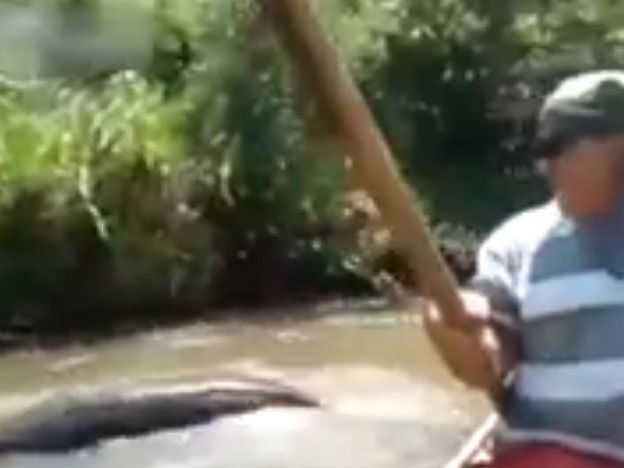 Un grupo de brasileños se topó con una gigantesca anaconda en mitad del río por el que navegaban y no tuvieron mejor idea que filmarlo.