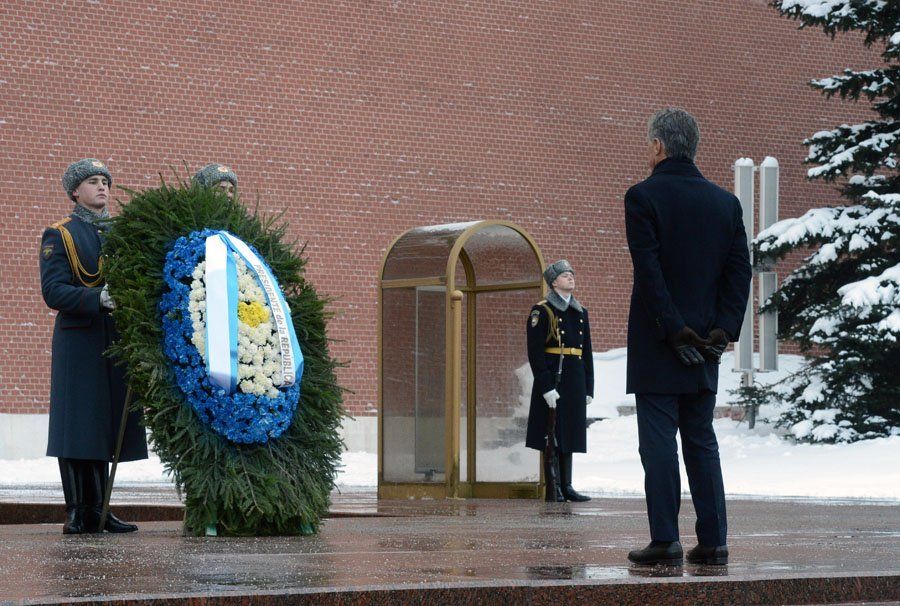 En un comunicado, Presidencia destacó que "se trata de un gesto de reciprocidad por parte de las autoridades rusas, ya que en septiembre del año pasado la ciudad de Buenos Aires se inauguró la plaza Federación de Rusia, delimitada por las calles La Pampa, Castañeda, Valentín Alsina y Dragones, en el barrio de Belgrano". Luego, el jefe de Estado se dirigió al Kremlin, y allí, frente al muro del Palacio, en el Jardín Alexander, colocó una ofrenda en la tumba del Soldado Desconocido, monumento dedicado a los soldados soviéticos caídos en la Gran Guerra Patria. Ante el monumento, Macri guardó un minuto de silencio y luego desfiló una guardia de honor, mientras que una banda militar ejecutó un tema emblemático ruso. La actividad de Macri continuará con un encuentro con su par ruso, Vladimir Putin, en el Kremlin. Previo a estos actos, el jefe de Estado se reunió durante la mañana con empresarios de firmas líderes locales en el Hotel Ritz Carlton de Moscú, donde se encuentra alojado.Fuente: Diario UNO de Mendoza