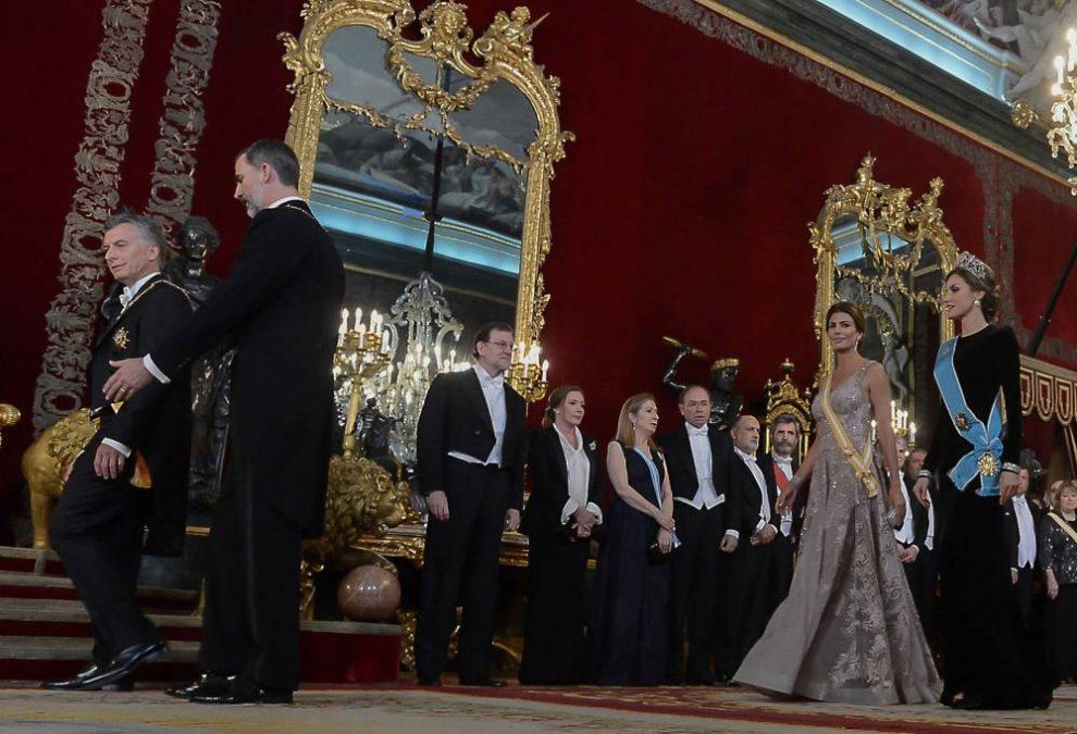 Antes de hablar en el Congreso, el presidente Mauricio Macri, acompañado de su esposa, fue recibido de forma oficial y con los honores de ordenanza por los Reyes de España en el Palacio Real.