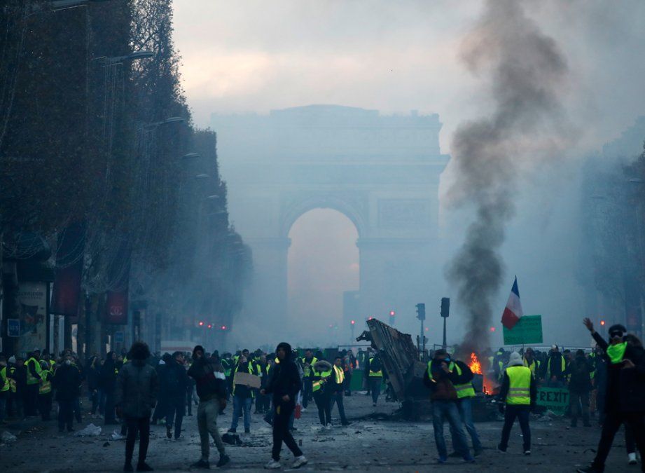 El presidente de Francia Emmanuel Macron comparó las imágenes de los disturbios que sembraron caos en los Campos Elíseos de París el fin de semana con "escenas de guerra".