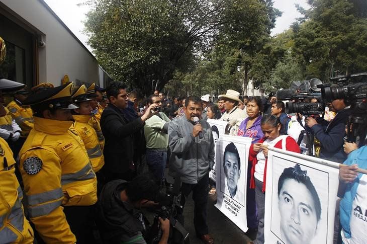 Los protestantes se reunieron frente de la embajada de Alemania en la Ciudad de México, para reclamar por el supuesto uso policial de fusiles G36 en el estado de Guerrero. Dicha policía fue acusada de detener a los estudiantes y entregarlos a un grupo del narcotráfico, que al parecer los mató. Felipe de la Cruz, líder de la protesta, dijo que Alemania debería evitar ese tipo de ventas.